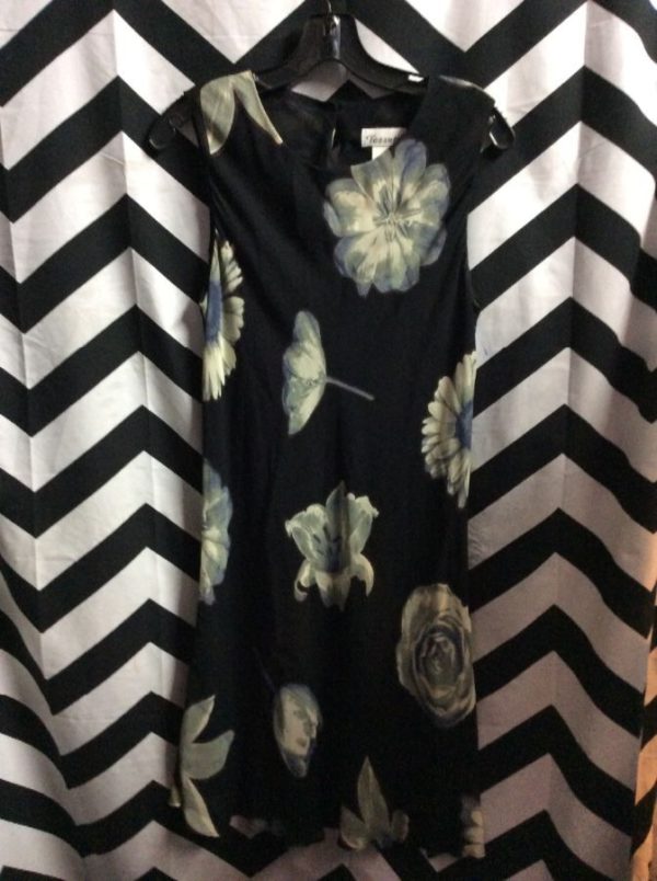 Dress, sleeveless, chiffon, multiple flower design, black/light blue, size M