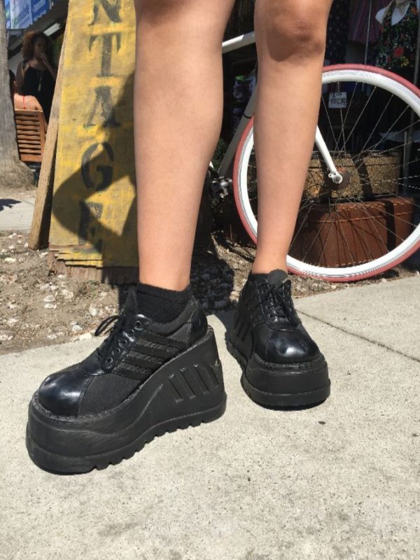 Demonia shoes, chunky, platform, club kid style, lace-up, round toes, black