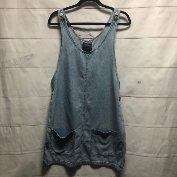 JUMPER DRESS FLORAL PRINT W/ SHELL BUTTONS ON STRAPS & FRONT POCKET