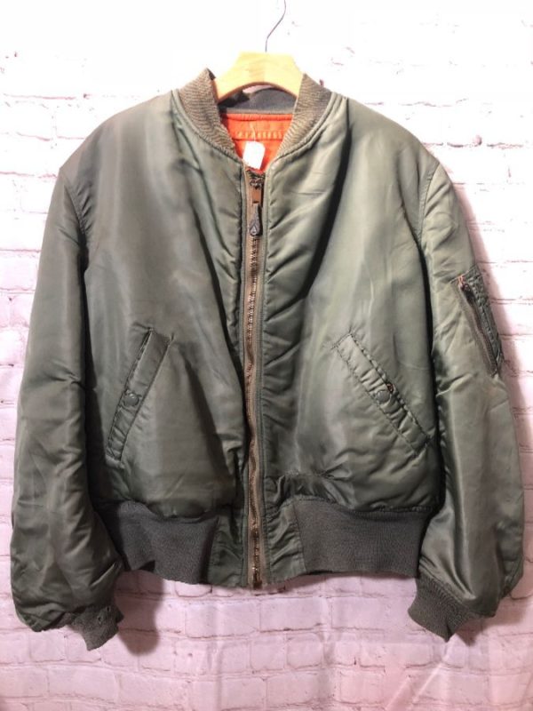 CLASSIC REVERSIBLE MILITARY BOMBER JACKET ZIP UP WITH POCKET ON SLEEVE ORANGE LINING AS IS