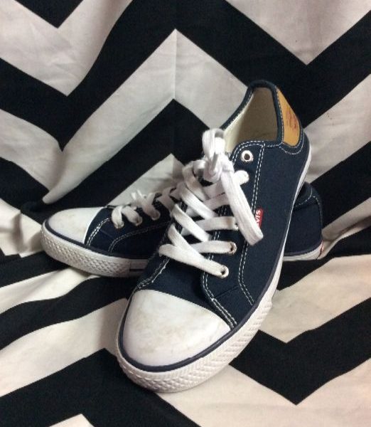 Classic Levis tennis shoes, canvas, lace-up, navy/white, size 8.5