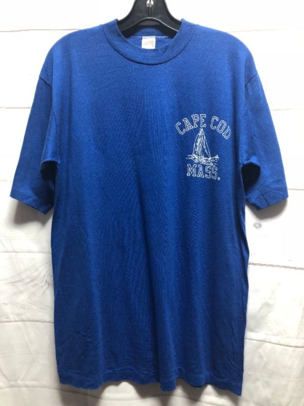 Classic retro Sportswear T-shirt, Cape Cod Mass., 50/50 poly/cotton, screen printed left chest sailboat graphic, blue/white, size XL