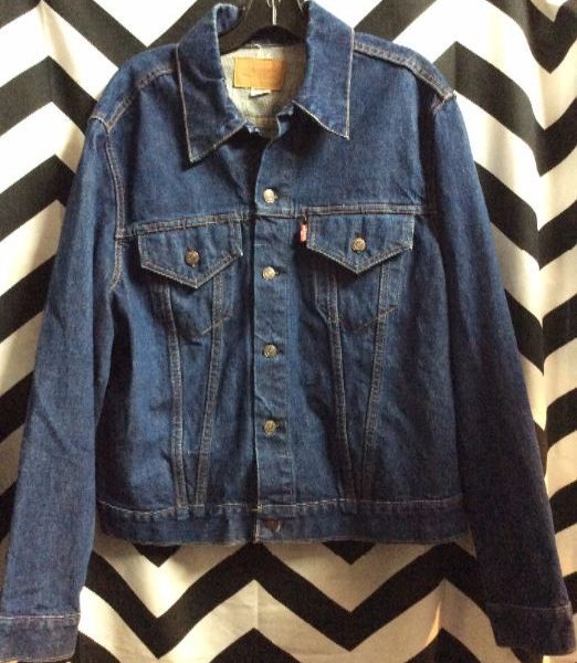 Classic Levis denim jacket, button-up, dark wash, indigo blue, size 46