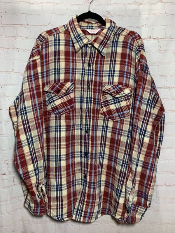 PLAID BUTTON UP FLANNEL COTTON LS SHIRT WITH FRONT BUTTON POCKETS