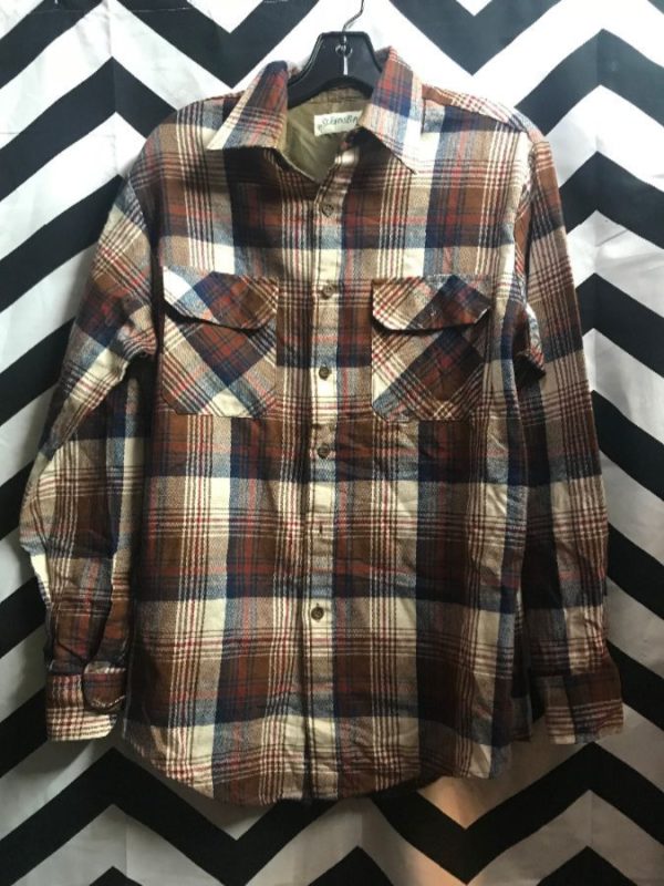 WESTERN FLANNEL SHIRT W/ PEARL SNAPS & PLAID DESIGN