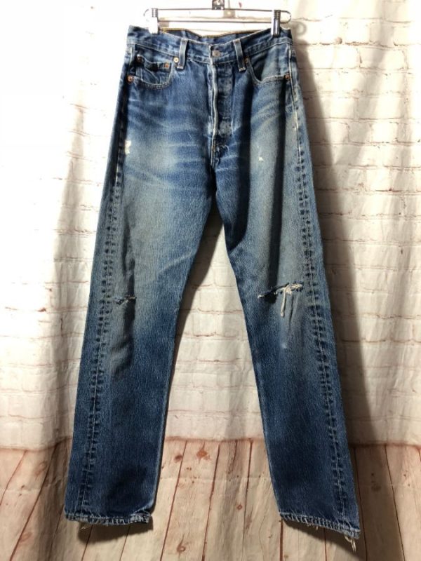 CLASSIC LEVIS 501 DENIM JEANS W/ RIPPED KNEES LONG STRAIGHT LEGS