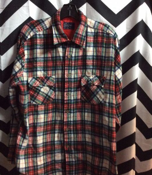 PENDLETON WOOL LONG SLEEVE BUTTON UP FLANNEL W/ EXTENDED TAILORED SIDES