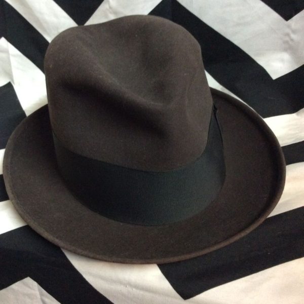 VINTAGE RIO BRAVO WOOL FEDORA WIDE BRIMMED HAT WITH LARGE FEATHER CENTER PIECE
