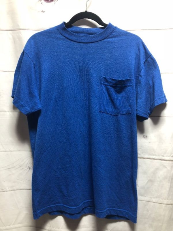 Classic Roebucks T-shirt, plain solid colored, pocket Tee, right chest pocket, blue, size M