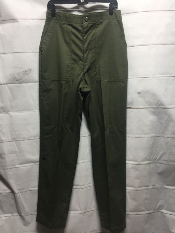 Classic military trousers/pants, zip-up, straight legs, button-up back pockets, army green, size 34W