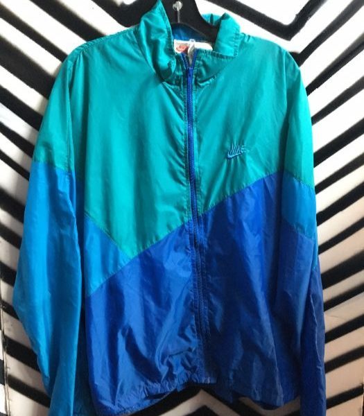 Classic Nike windbreaker, zip-up, color block design, teal/blue, size L