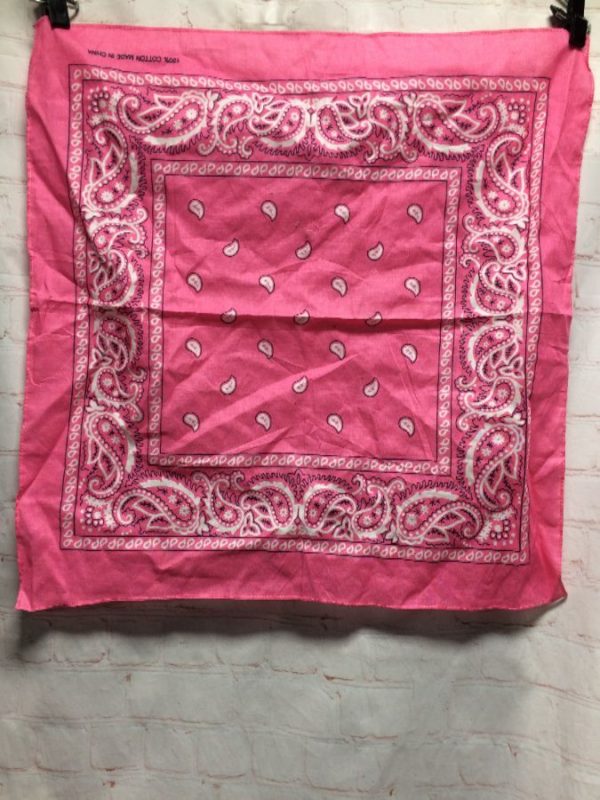 Bandana, square shaped, classic Paisley print design, pink/white/black