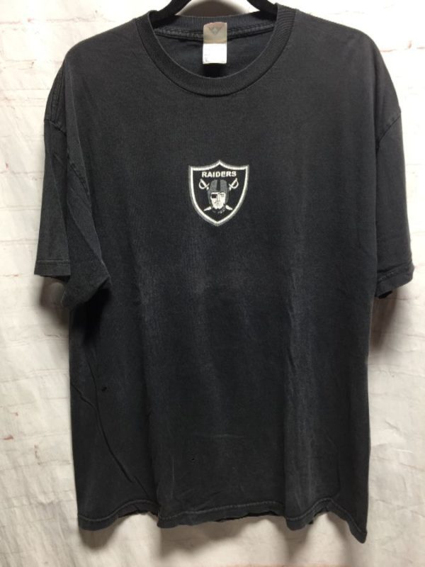 Classic AAA T-shirt, Oakland Raiders, Fuck All Raider-Haters, screen printed center front logo & full back lettering & grim reaper graphic, black/silver, XL As is