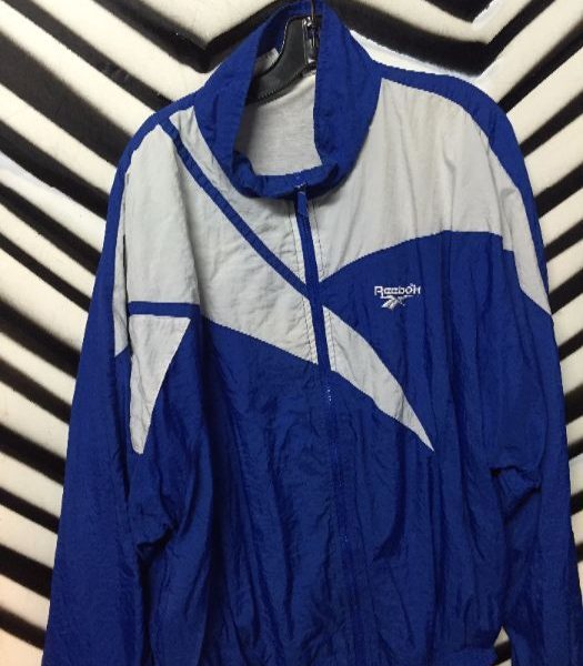1990’s classic Reebok windbreaker, zip-up, color block design, blue/white, size XL