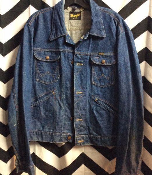 Classic retro Wrangler denim jacket, button-up, dark wash, dark blue
