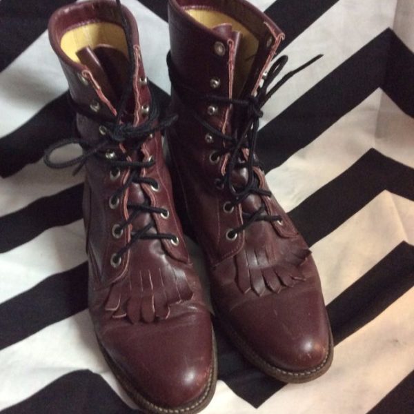Classic Justin Roper boots, leather, shiny, lace-up, burgundy, size 6.5/8.5