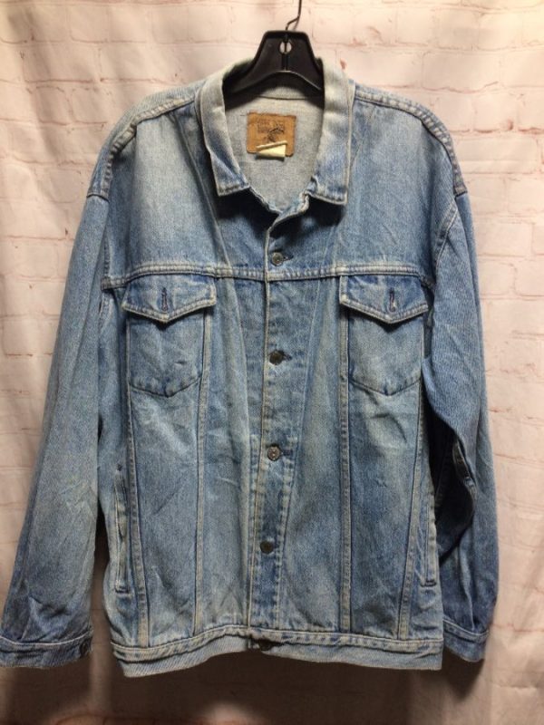 CLASSIC SLOUCHY DENIM JACKET COTTON W/ 2 CHEST & SIDE POCKETS ACID WASH
