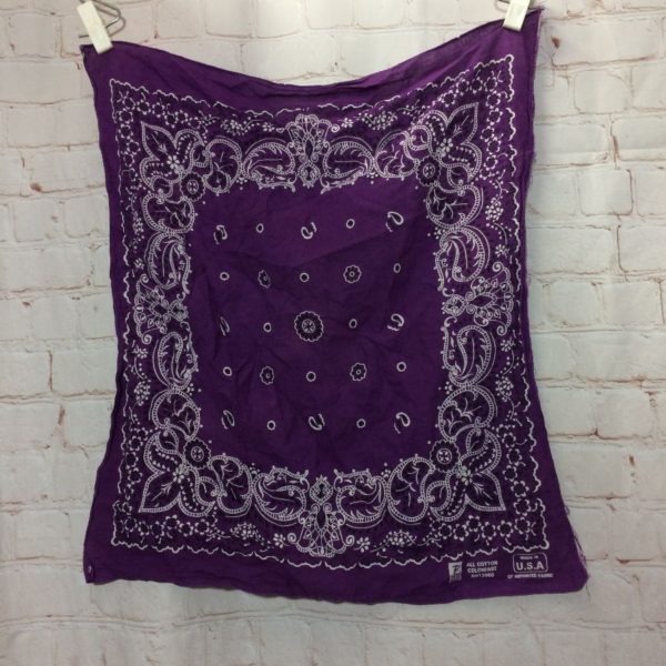 Bandana, cotton, square shape, soft, classic Paisley border print, purple/white