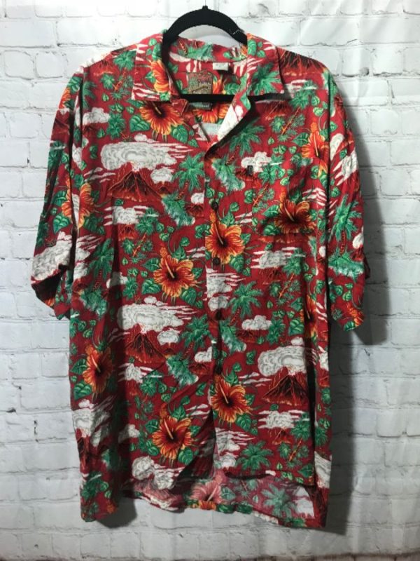 CLASSIC HAWAIIAN SHIRT W/ VOLCANO & FLORAL PRINT