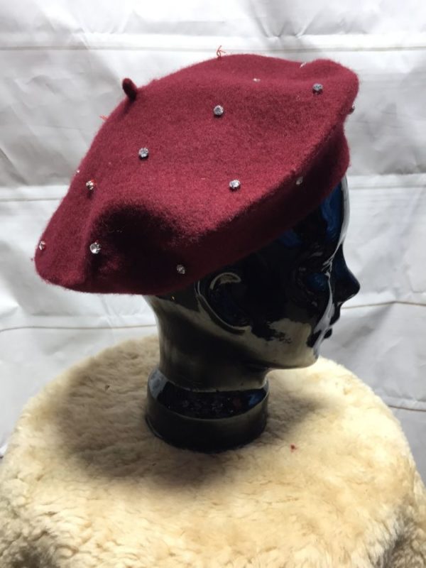 CLASSIC WOOL BERET WITH GLASS RHINESTONES SEWN IN – AS IS