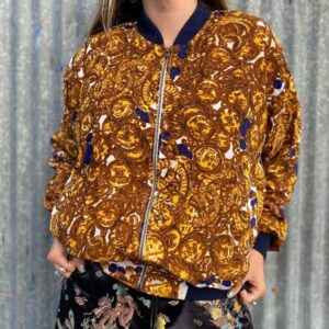 SILK ORNATE PRINTED ZIPUP BOMBER JACKET