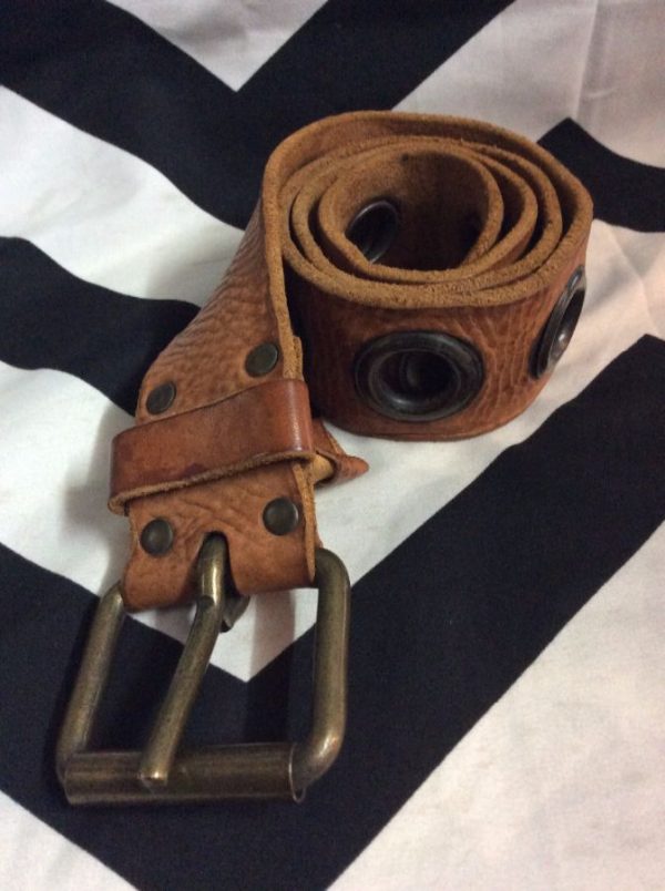 BROWN LEATHER BELT LARGE CHAIN LINK BUCKLE