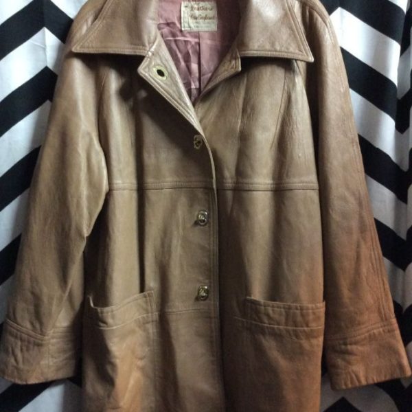 COAT LEATHER W/TWIST BUTTONS TWO FRONT POCKET & SATIN LINING