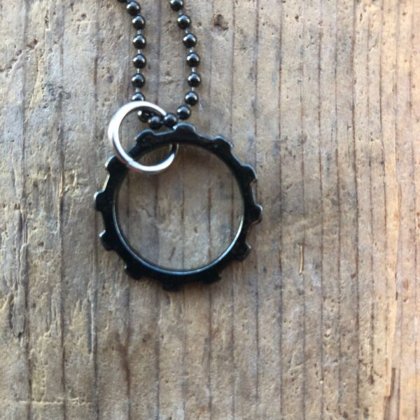 COG LOCK RING GEAR CHARM NECKLACE ON BALL CHAIN