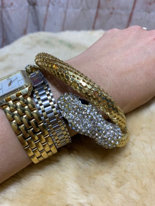 MESH SNAKE CHOKER NECKLACE W/ RHINESTONE ENCRUSTED HEAD & TAIL