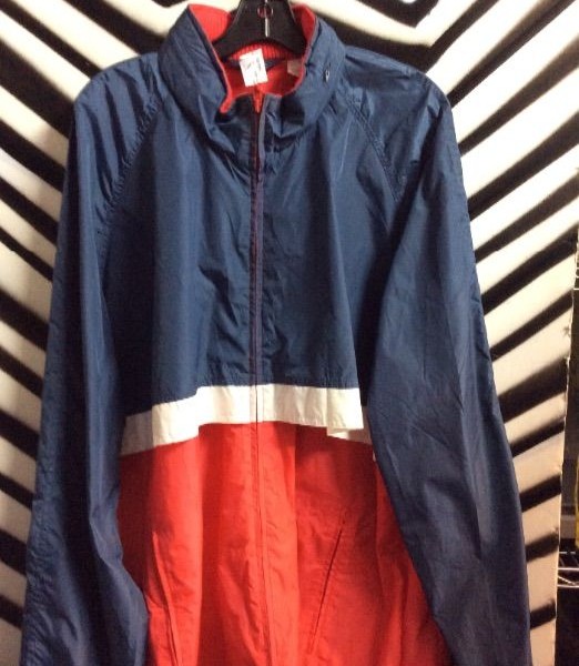 FUN! 1980S COLORBLOCK NYLON MOCK COLLAR ZIP-UP JACKET