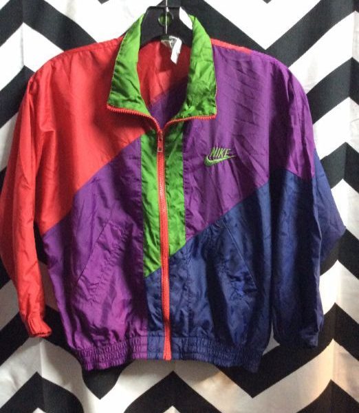 Nike windbreaker jacket, zip-up, color block, neon colors, red/green/blue/purple small size as is