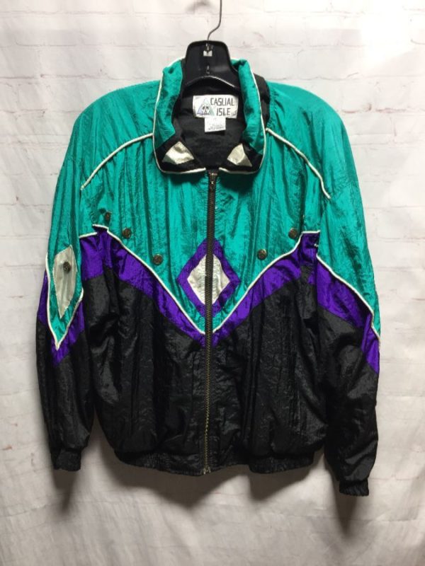 FUN! 1980S COLORBLOCK NYLON MOCK COLLAR ZIP-UP JACKET
