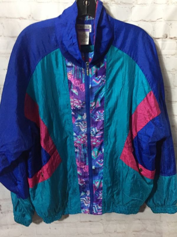 Atheltech windbreaker jacket, zip-up, solid colors & watercolor abstract print color-block design