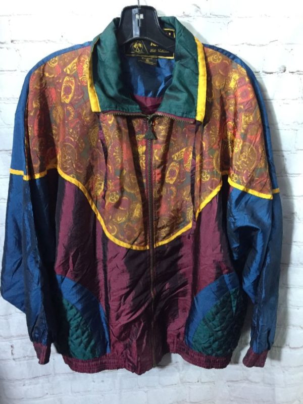 FUN! 1980S COLORBLOCK NYLON MOCK COLLAR ZIP-UP JACKET