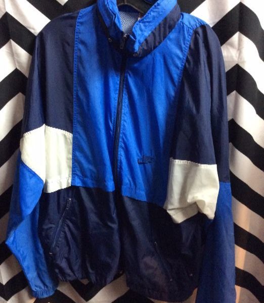 Nike windbreaker jacket, zip-up, color block design, motorsport color-way, blue/dark-blue/white, size L