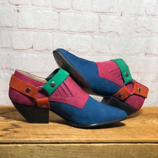 1980S-90S SUEDE COLORBLOCK WINKLEPICKER HARNESS BOOTIES #PERFECTION