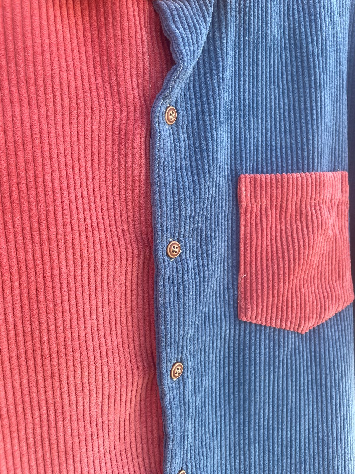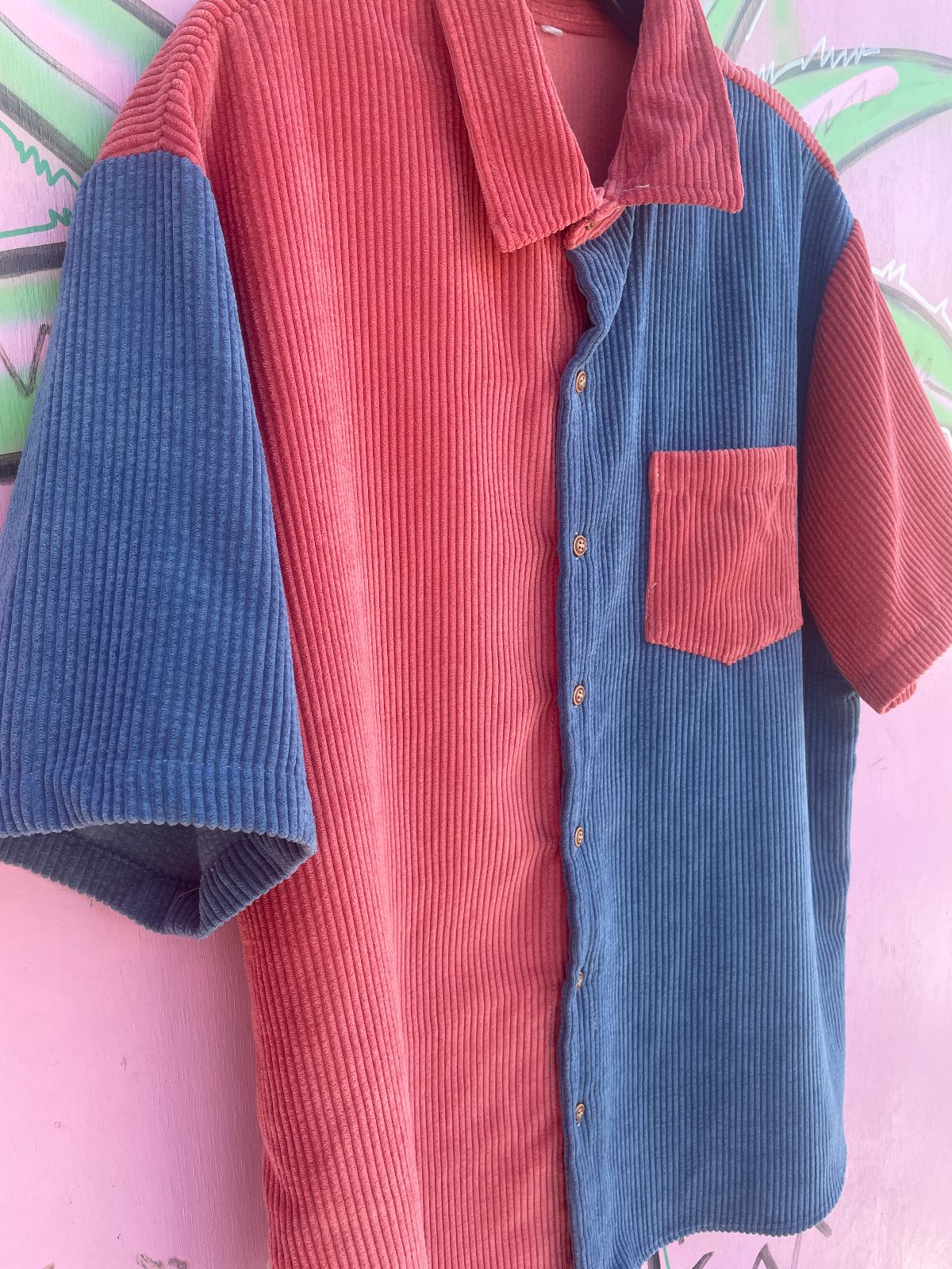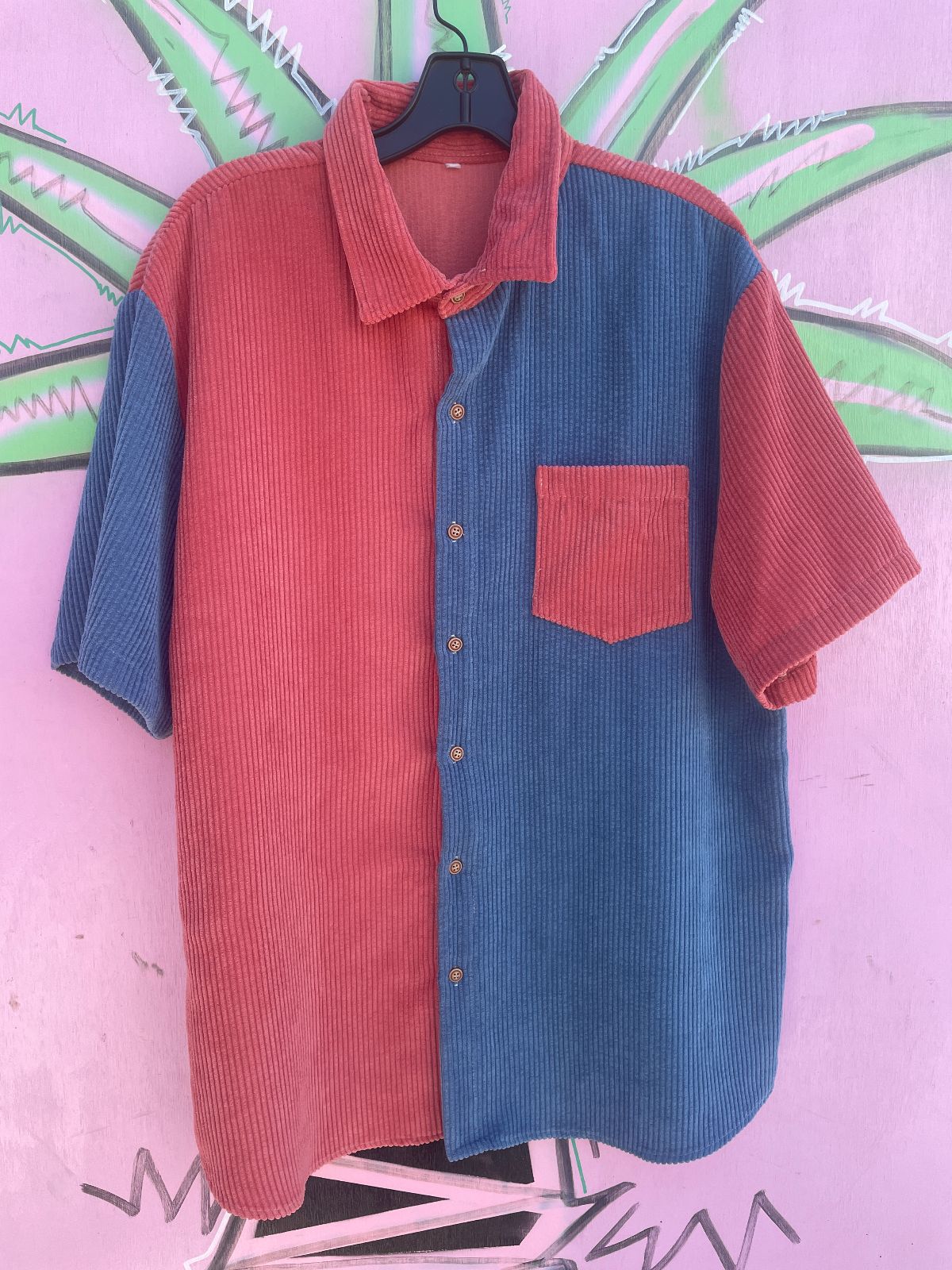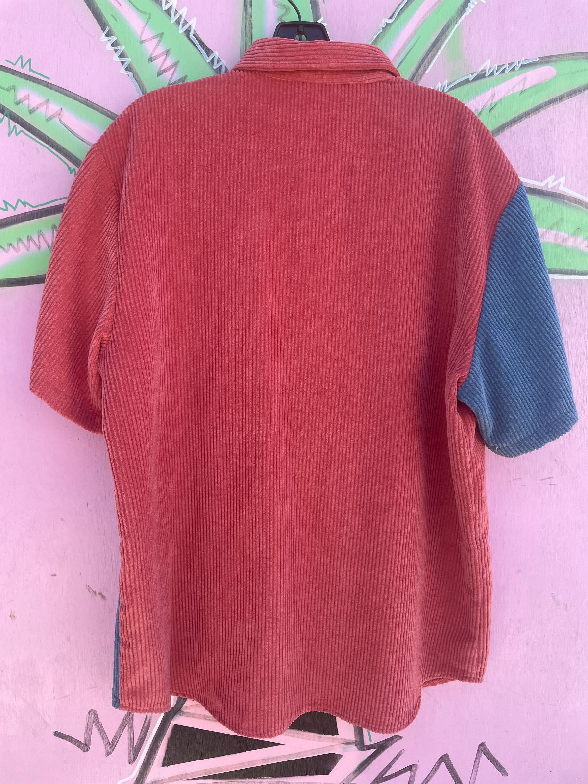 COLORBLOCK SHORT SLEEVE BUTTON DOWN CORDUROY SHIRT