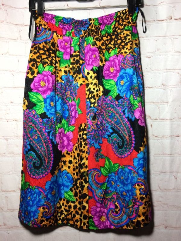 COLORFUL MIXED PAISLEY BAROQUE PRINT SILK SKIRT W/ ELASTIC WAIST