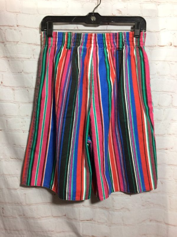 COLORFUL VERTICAL STRIPES DESIGN W/ ELASTIC WAIST COTTON SHORTS W/ POCKETS