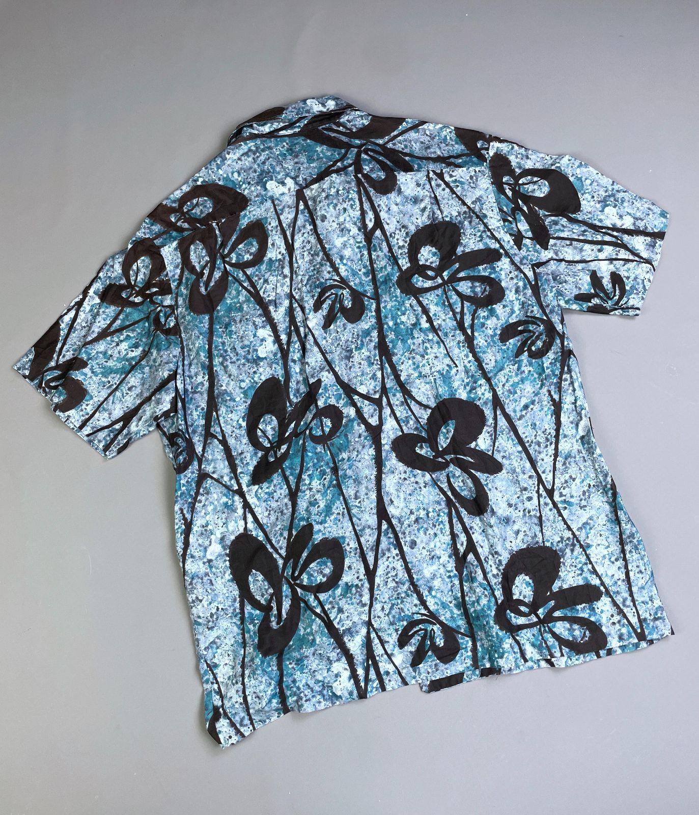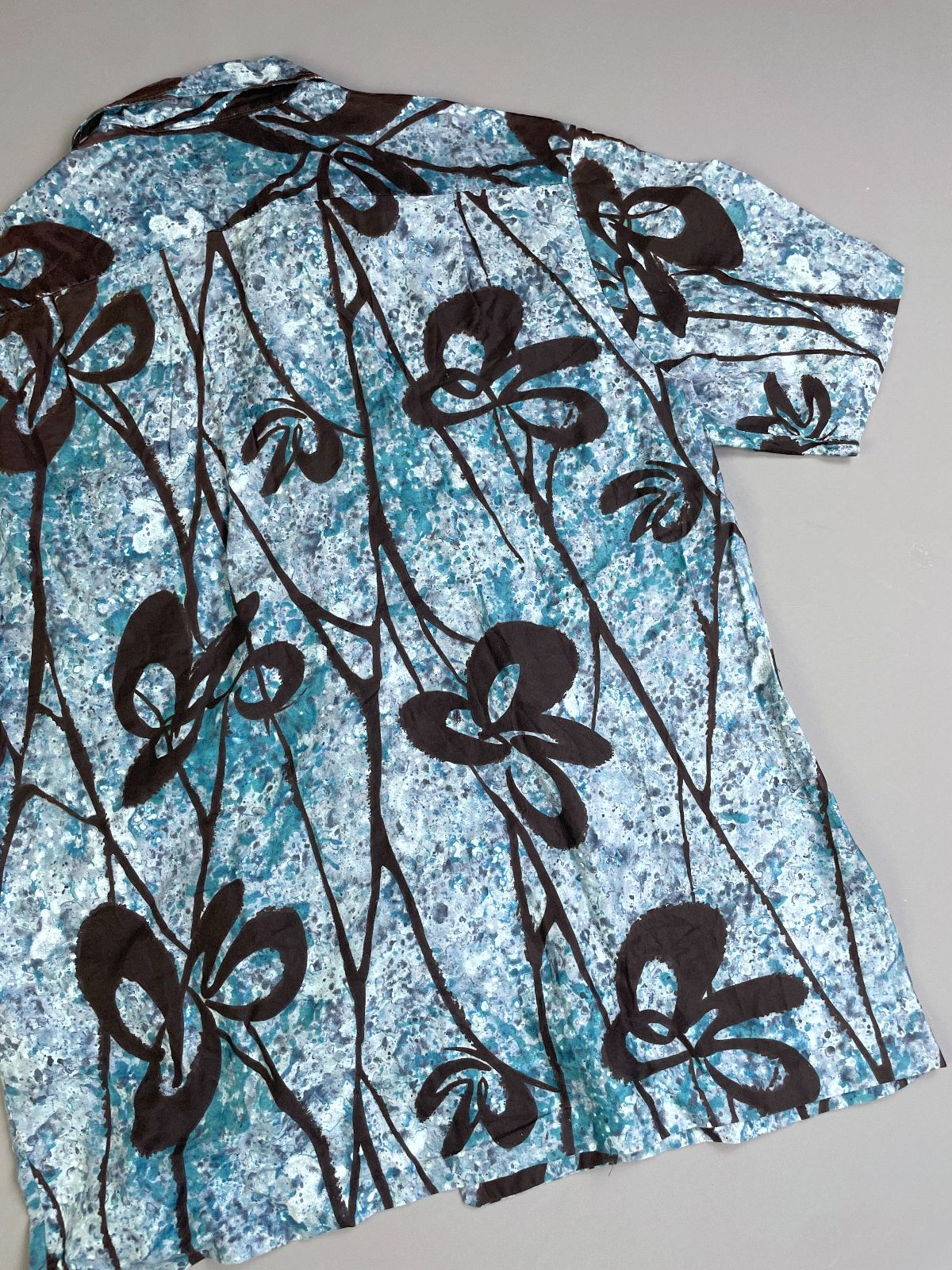 COOL! 1960S-70S BATIK STYLE HAWAIIAN SHIRT SPLATTER PAINTED DESIGN
