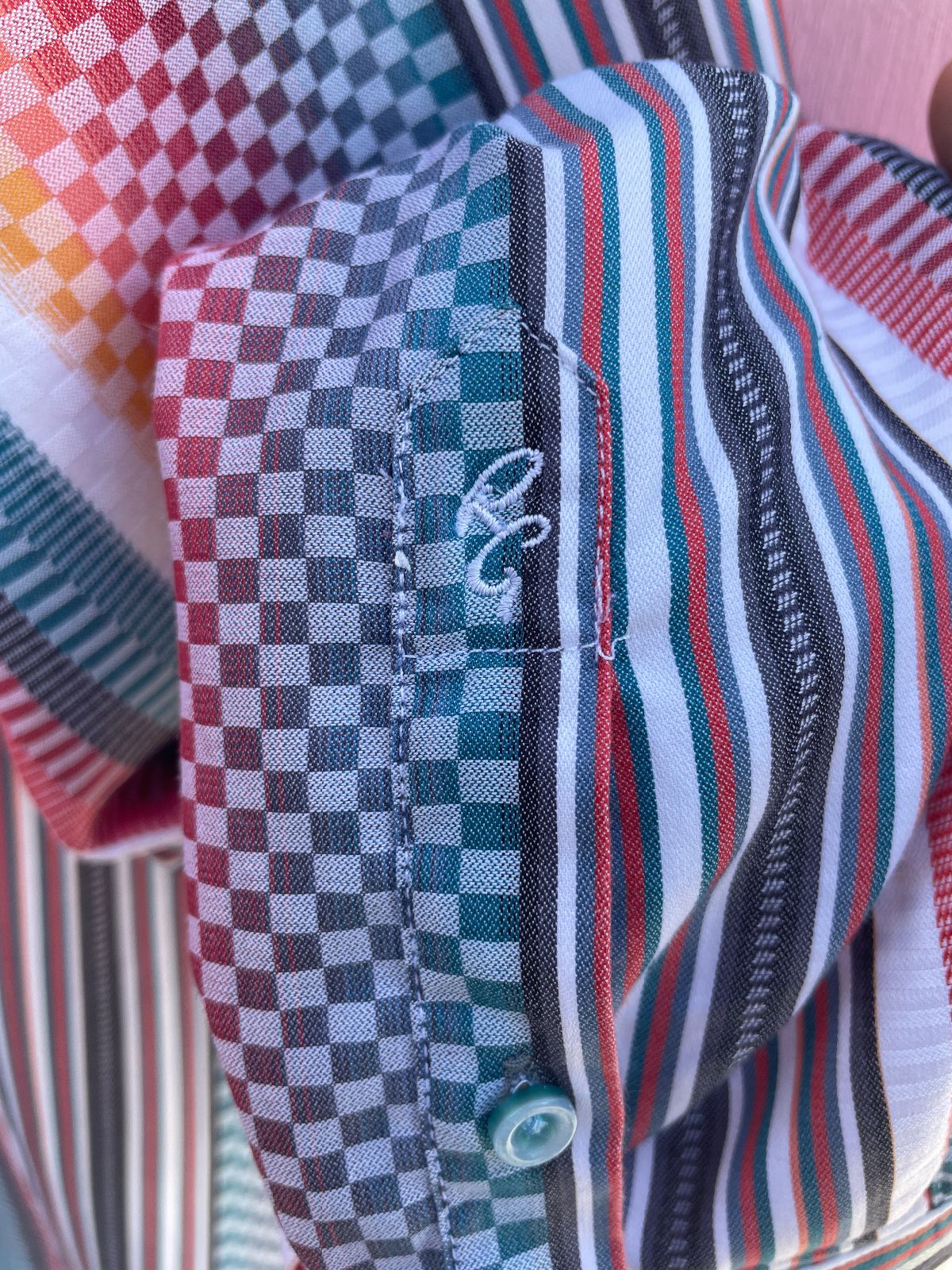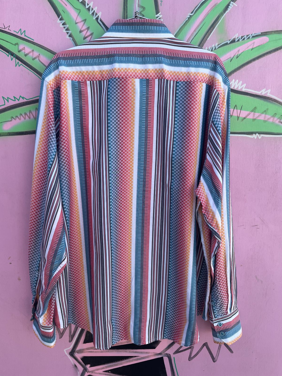 COOL! CHECKERED & VERTICAL STRIPED SERAPE INSPIRED PRINT LONG SLEEVE BUTTON DOWN SHIRT