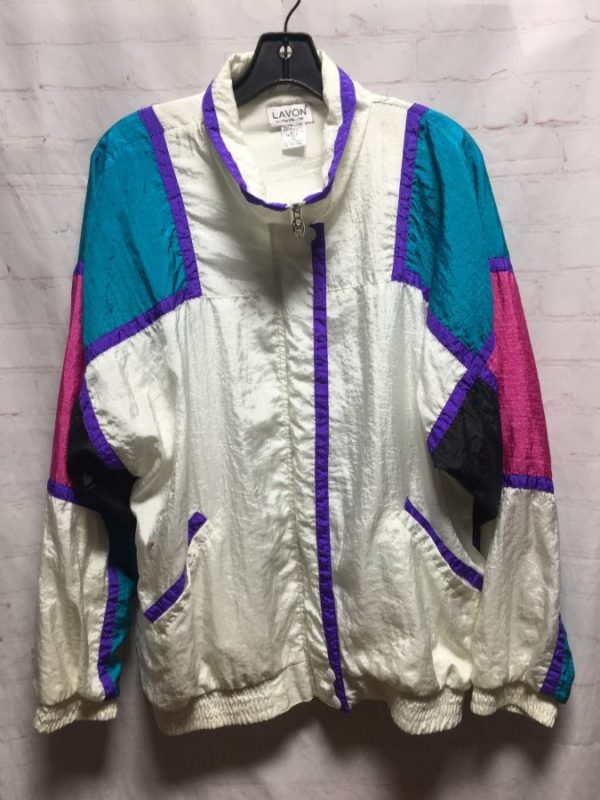 FUN! 1980S COLORBLOCK NYLON MOCK COLLAR ZIP-UP JACKET