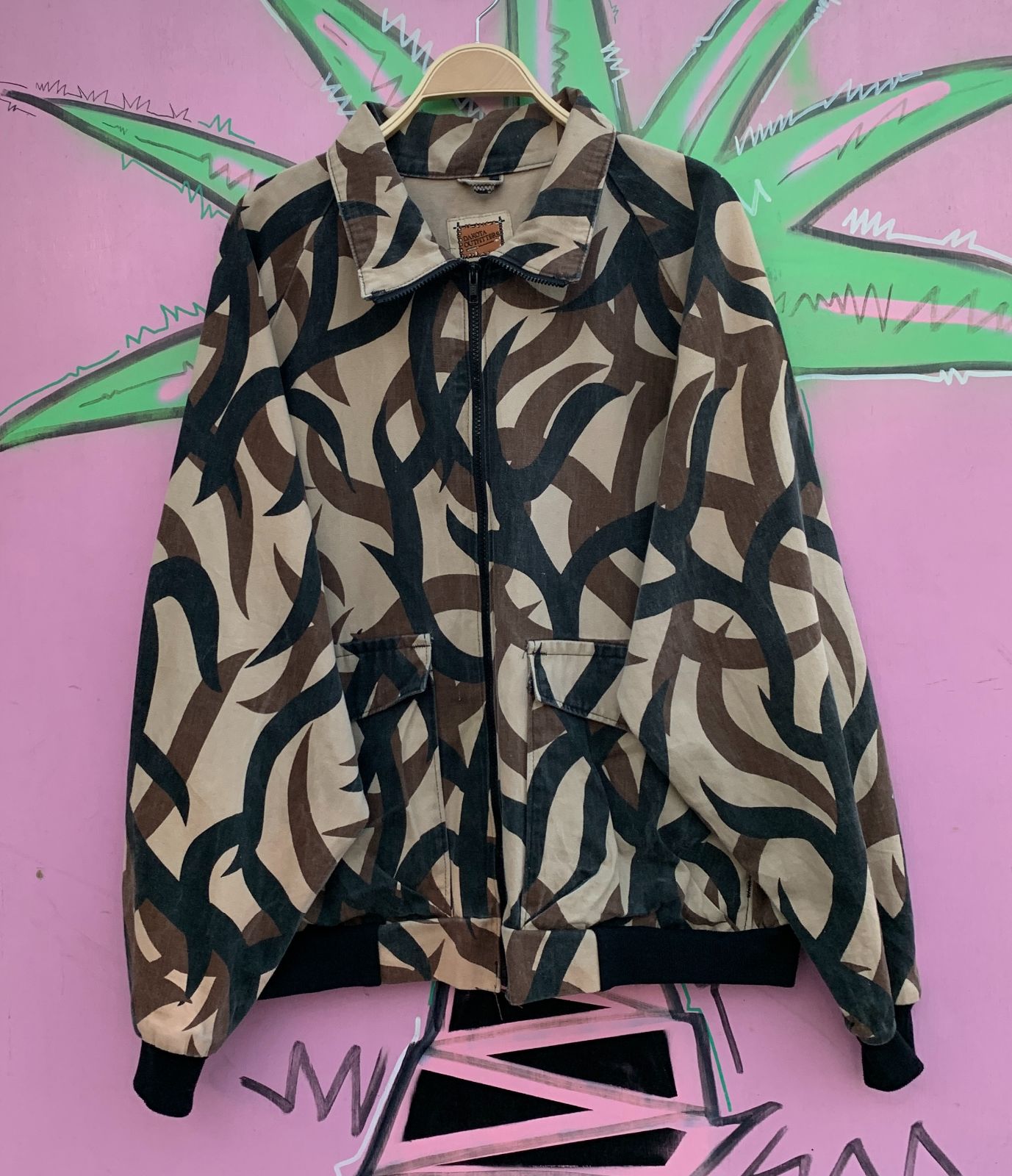 COOL! DENIM CAMOUFLAGE DESIGN ZIP UP JACKET