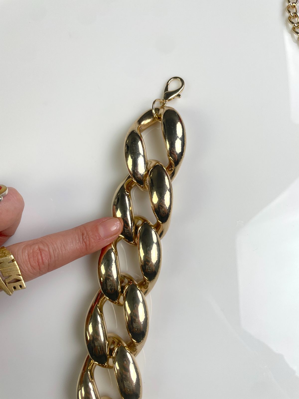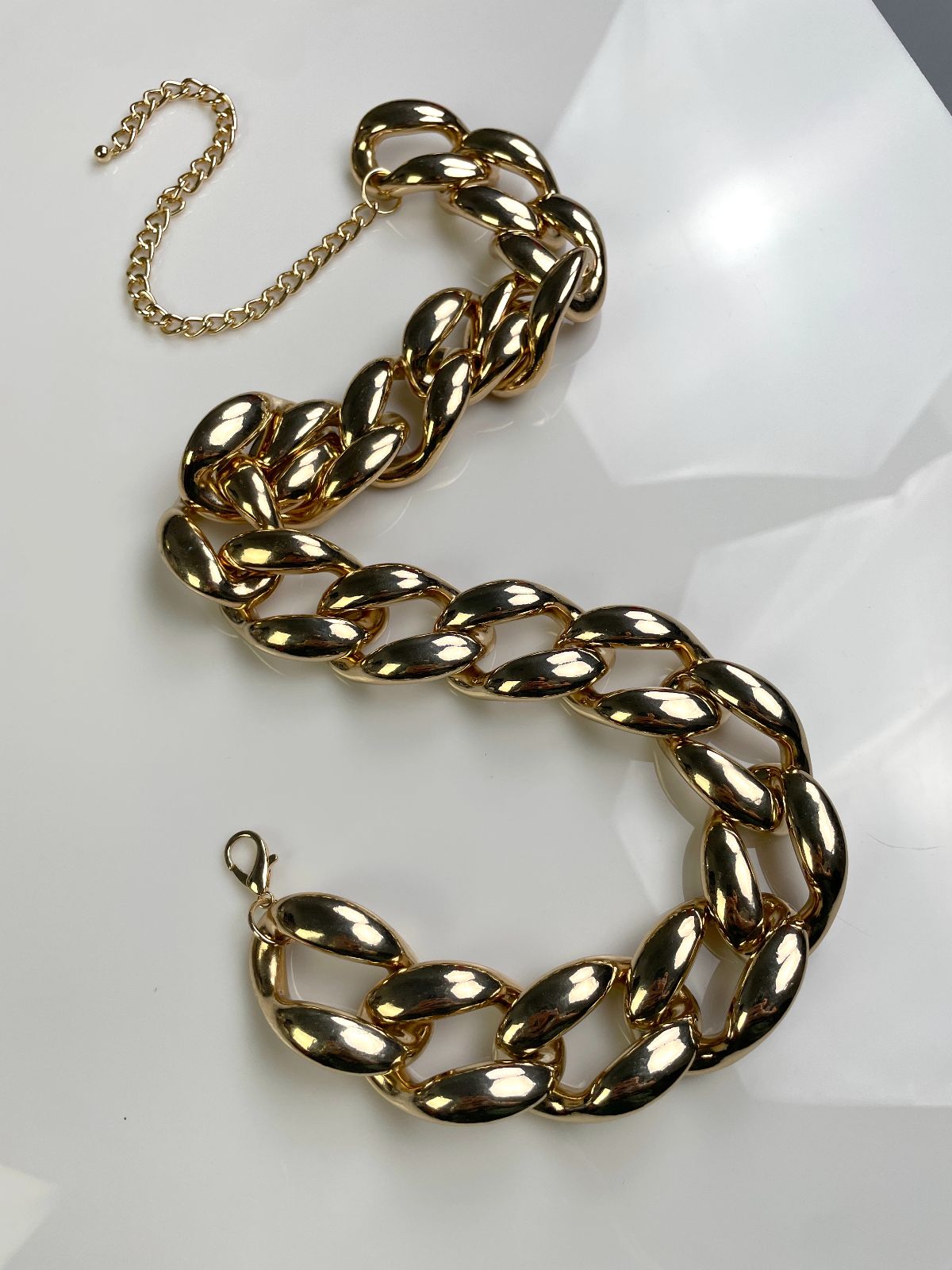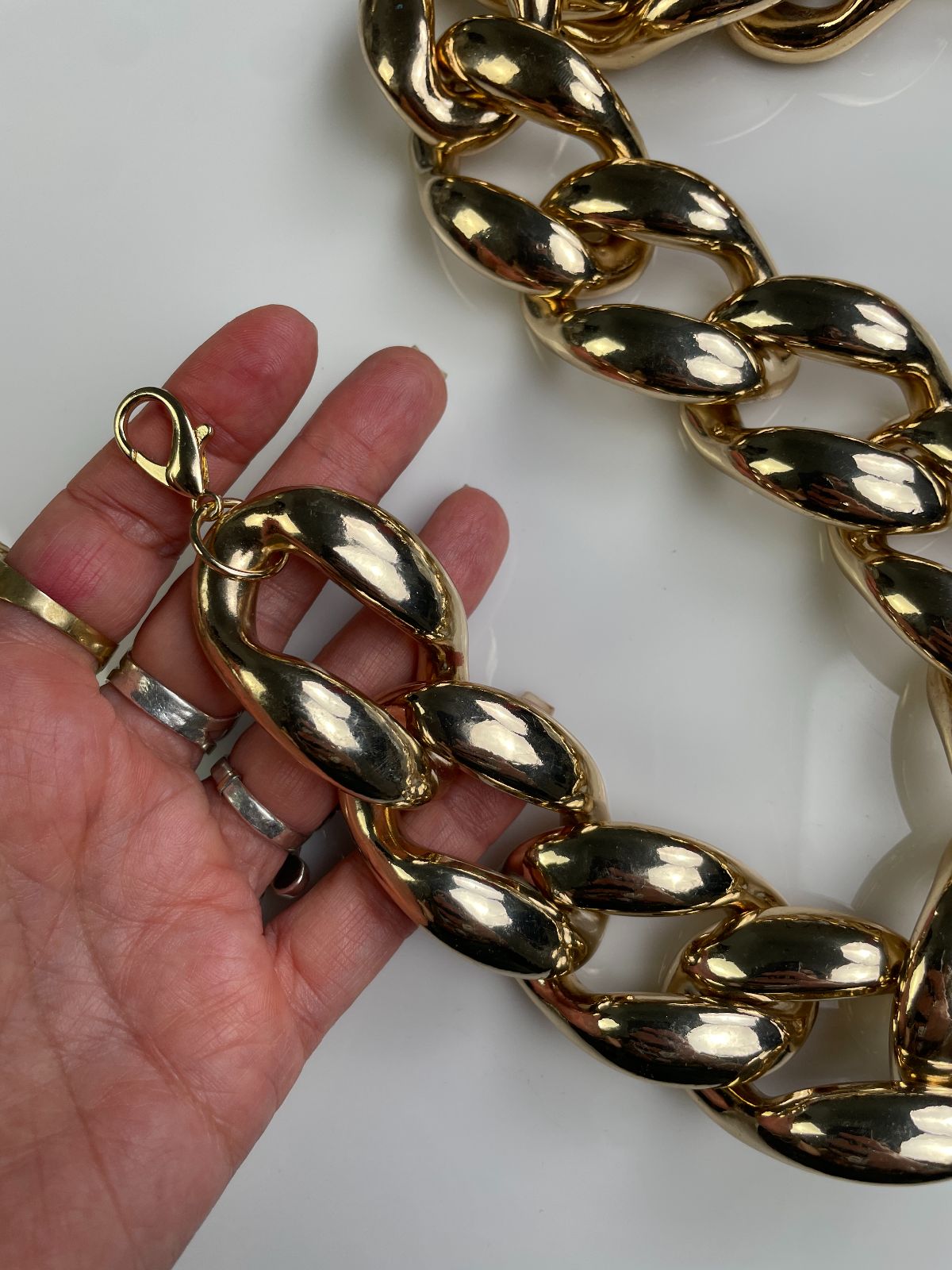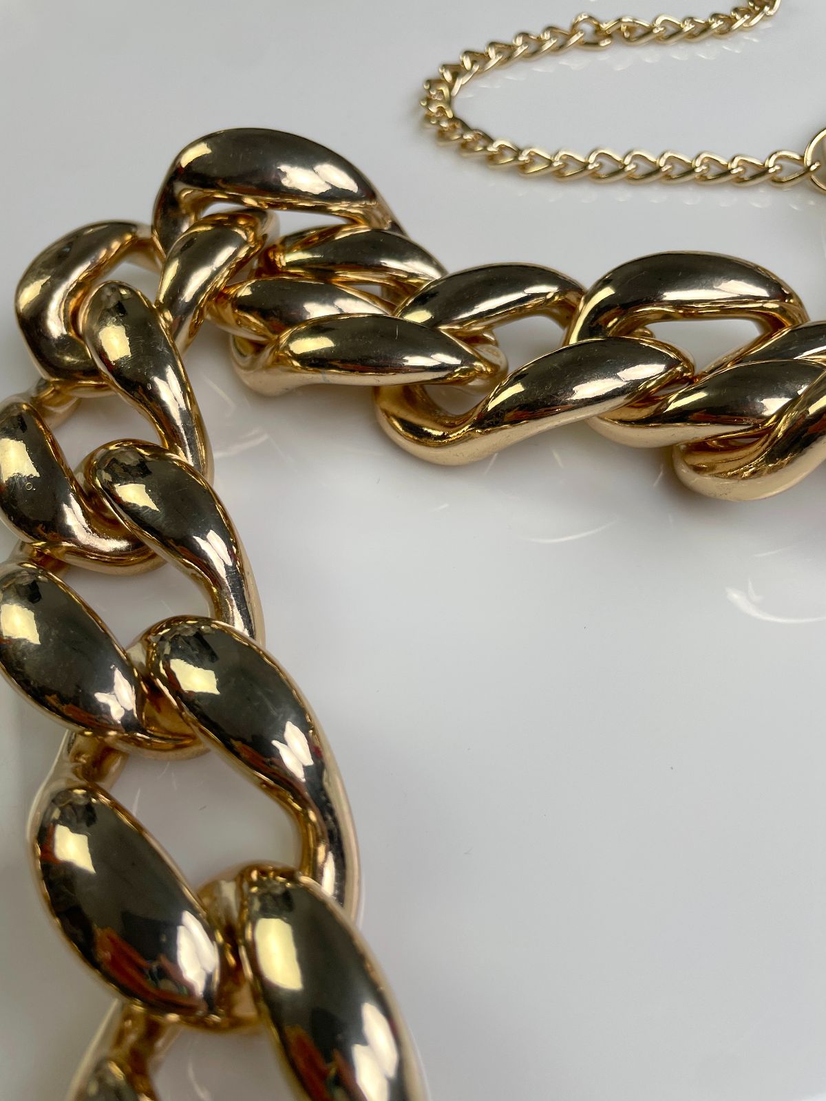 COOL! GOLD PLATED OVERSIZED PLASTIC PUFFY CHAIN LINK BELT / NECKLACE