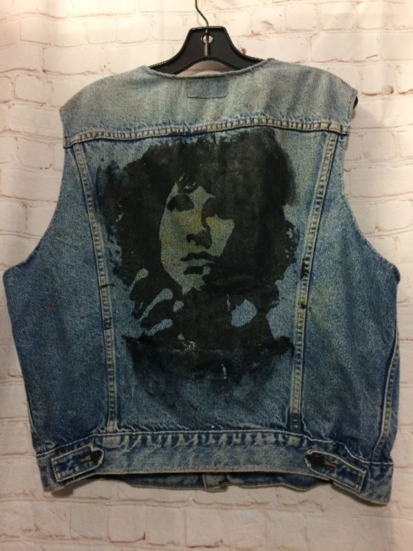 LEVIS DENIM VEST JIM MORRISON BACK GRAPHIC CUT-UP & ADDED INTERIOR POCKET