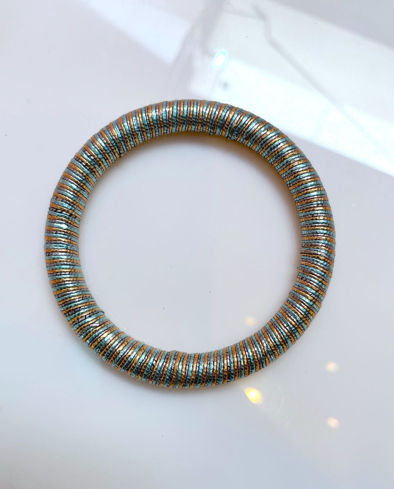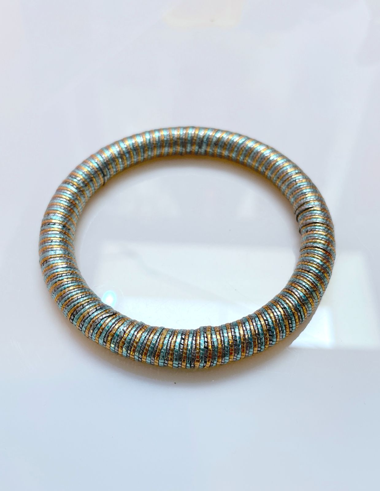 COOL! WRAPPED METALLIC GOLD & BLUE LUREX BANGLE BRACELET UNIQUE TEXTURED DESIGN