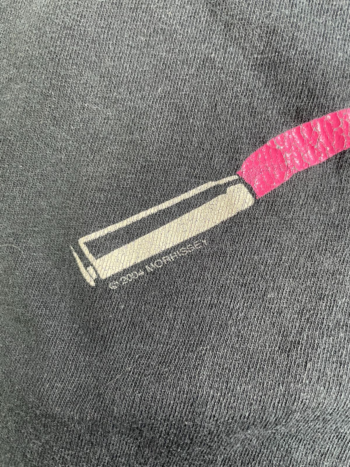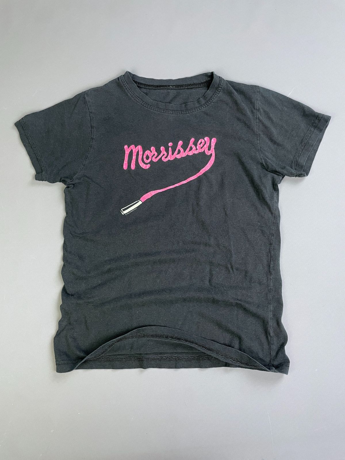 COOL! Y2K MORRISSEY LIPSTICK SHOELACE CRACKLED GRAPHIC PRINT BABY TEE T-SHIRT