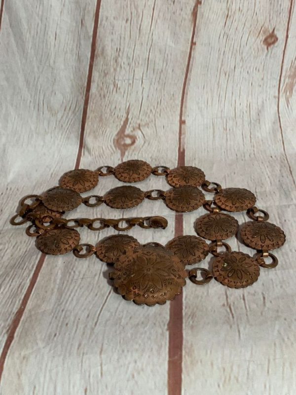 COPPER METAL CONCHOS W/ FLORAL DESIGN & CHAIN BELT