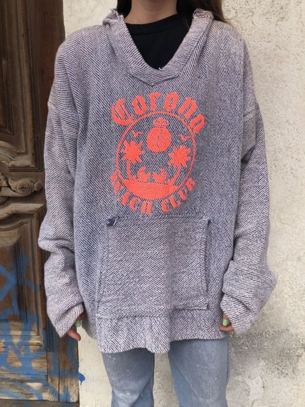 CORONA BEACH CLUB HOODED TWILL HERRINGBONE MEXICAN BLANKET BAJA SWEATSHIRT *AS-IS*
