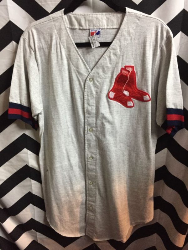 COTTON BASEBALL JERSEY BOSTON REDSOX STITCHED STRIPED ARM CUFFS